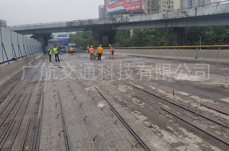 2018年12月,深圳市木棉中橋路段正式施工,由廣航交通負責該路段大面積混凝土攤鋪作業,為保證施工質量,同時兼顧快速開放交通的目標,根據業主要求,指定使用廣航交通GH高性能混凝土(快干水泥)作為主材料。