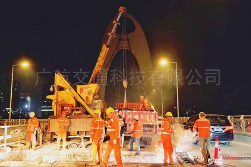 臨近廣州塔的獵德大橋,坐落在廣州土豪村-獵德村。為滿足快速恢復交通和減少施工噪音影響,獵德大橋采用了廣航交通GH快干水泥和HDC靜音橋梁伸縮縫組合。
