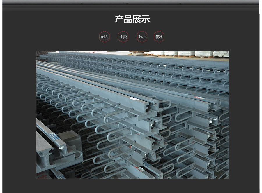 單組式伸縮量40-80mm,常用于高速橋,高架橋以及跨??绾哟髽蛑?具有經濟耐用,防水抗拉伸的特點,是市場中最常見的橋梁伸縮縫之一